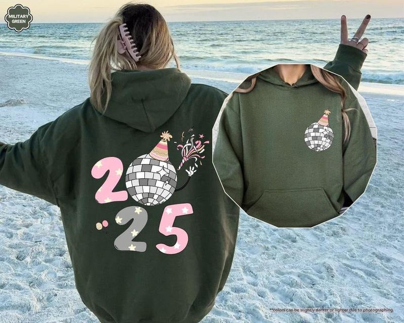 2025 Disco Ball Hoodie, Happy New Year Sweatshirt, Pink Party Sweater for Women - Pullover, Fabric