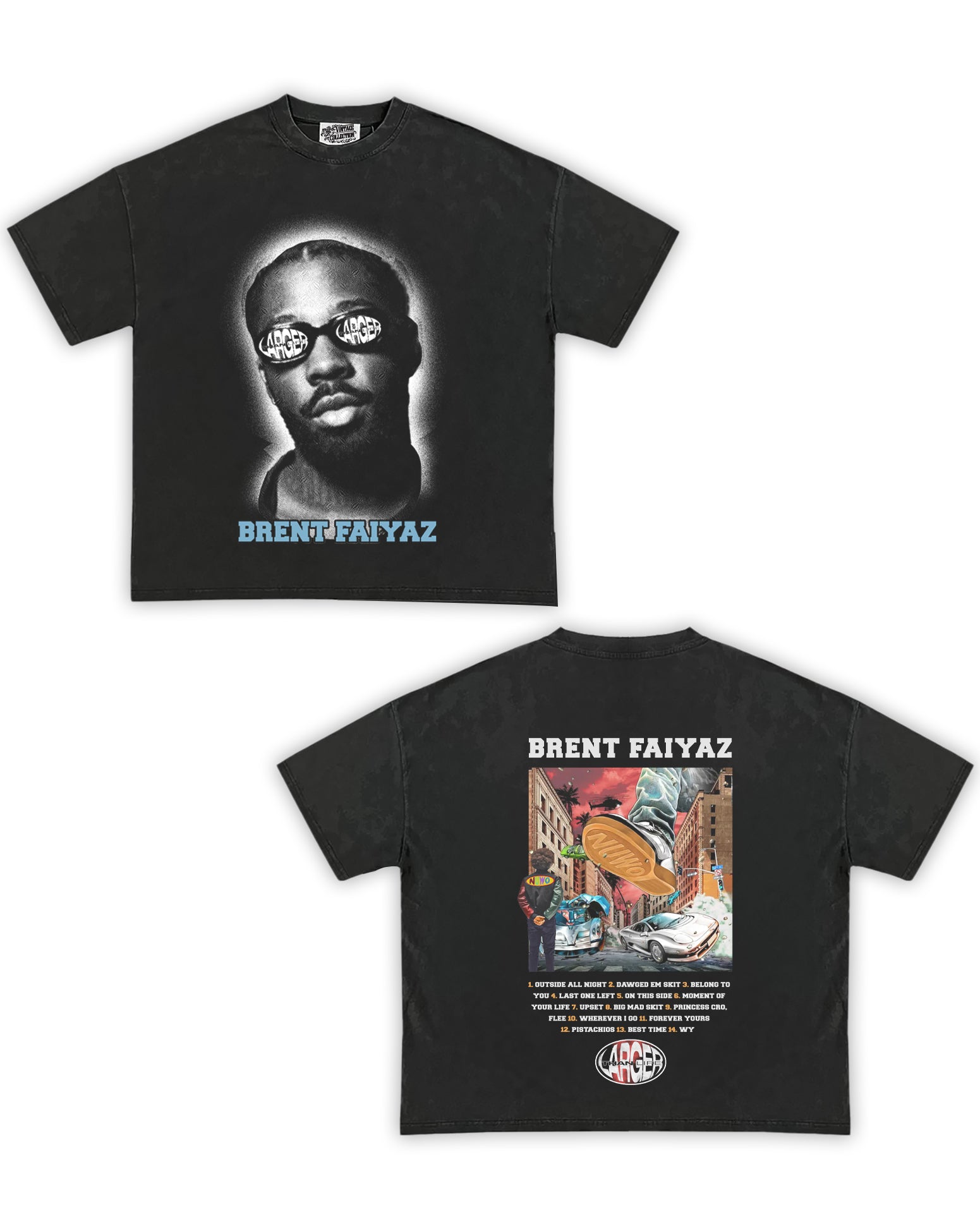 Brent Faiyaz Tribute Vintage Shirt: Front/Back (Vintage Black)