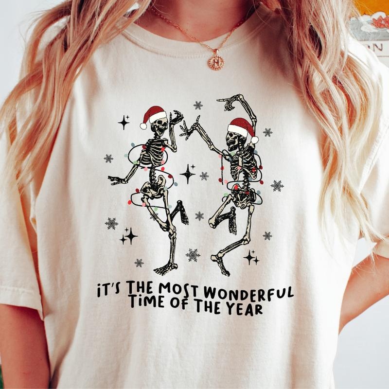 CHRISTMAS MOST WONDERFUL SKELETON T-SHIRT (COMFORT COLORS T-SHIRT, CASUAL SHIRT UNISEX, CHRISTMAS CLOTHING, GRAPHIC APPAREL, HOLIDAY SHIRT) Cotton Fabric