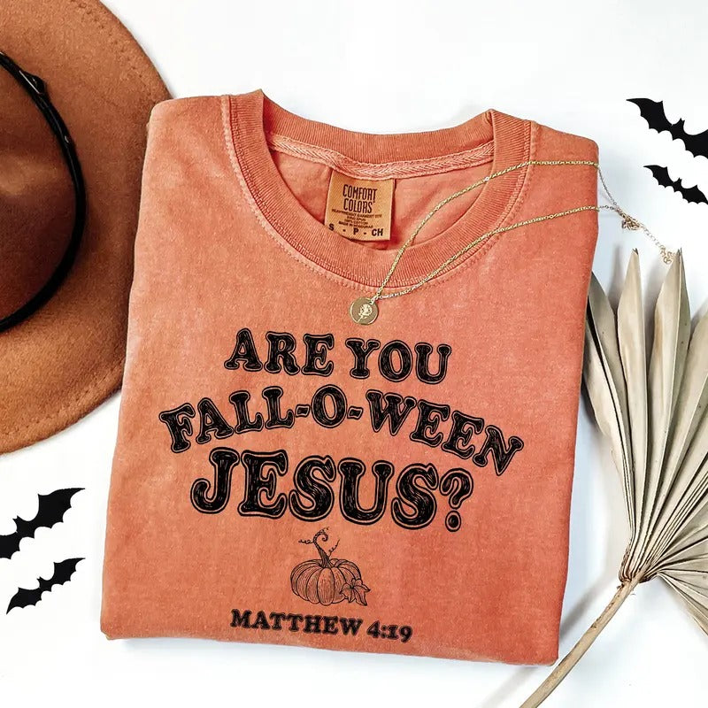 Comfort Colors Christian Halloween Shirt, Are You Fall-O-Ween Jesus Shirt, Fall Religious T-Shirt, Funny Pumpkin Christian Halloween