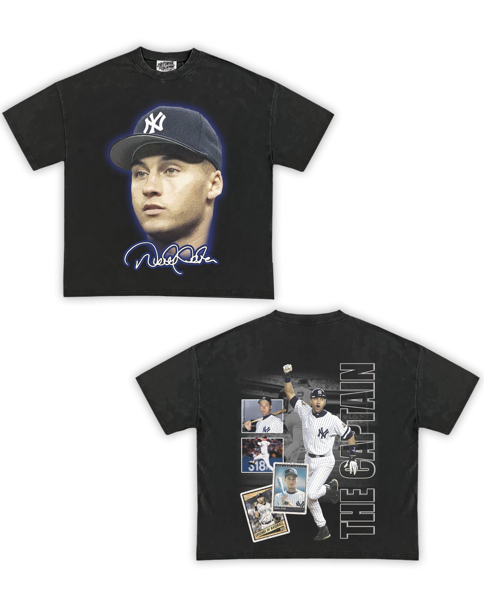 Derek Jeter Tribute Vintage Shirt: Front/Back (Vintage Black)