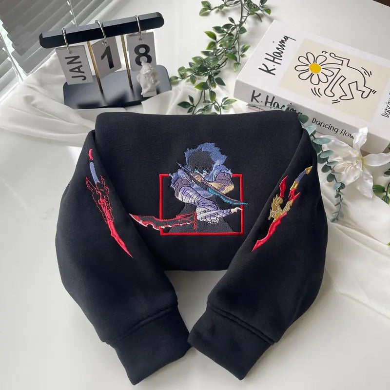 Embroidered Anime Sweatshirt, I Alone Level Up-Inspired Design, Monarch of Shadows Sweater, Double Dungeon Shirt, Gifts for Anime Lovers