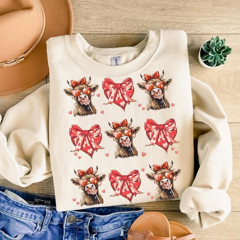 Highland Cow Valentine Coquette Sweatshirt, Valentine Heart , Love , Valentines