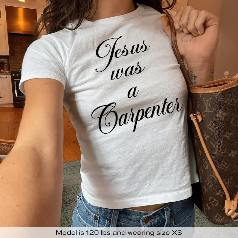 Jesus Was A Carpenter Y2k Baby Tee Y2k Shirt Sabrina Coachella Music Concert Baby Tee Trendy 90s Aesthetic Baby Tee Shirt Fan Gift Merch graphic tees