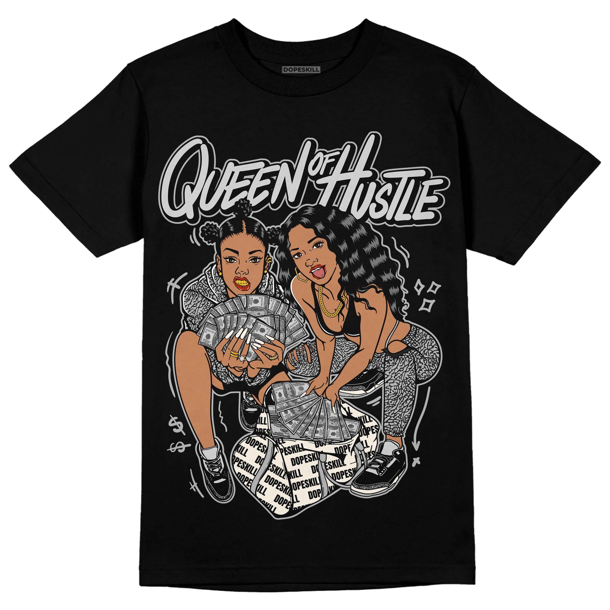 Off Noir 3s DopeSkill T-Shirt Queen Of Hustle Graphic