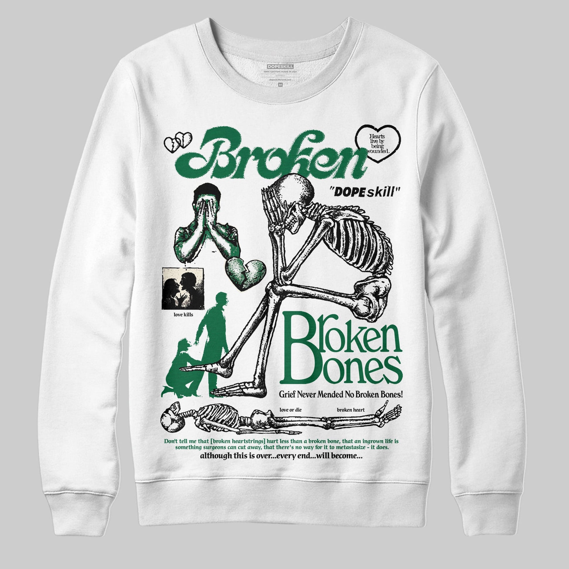 Pine Green 13s DopeSkill Sweatshirt Broken Bones Graphic