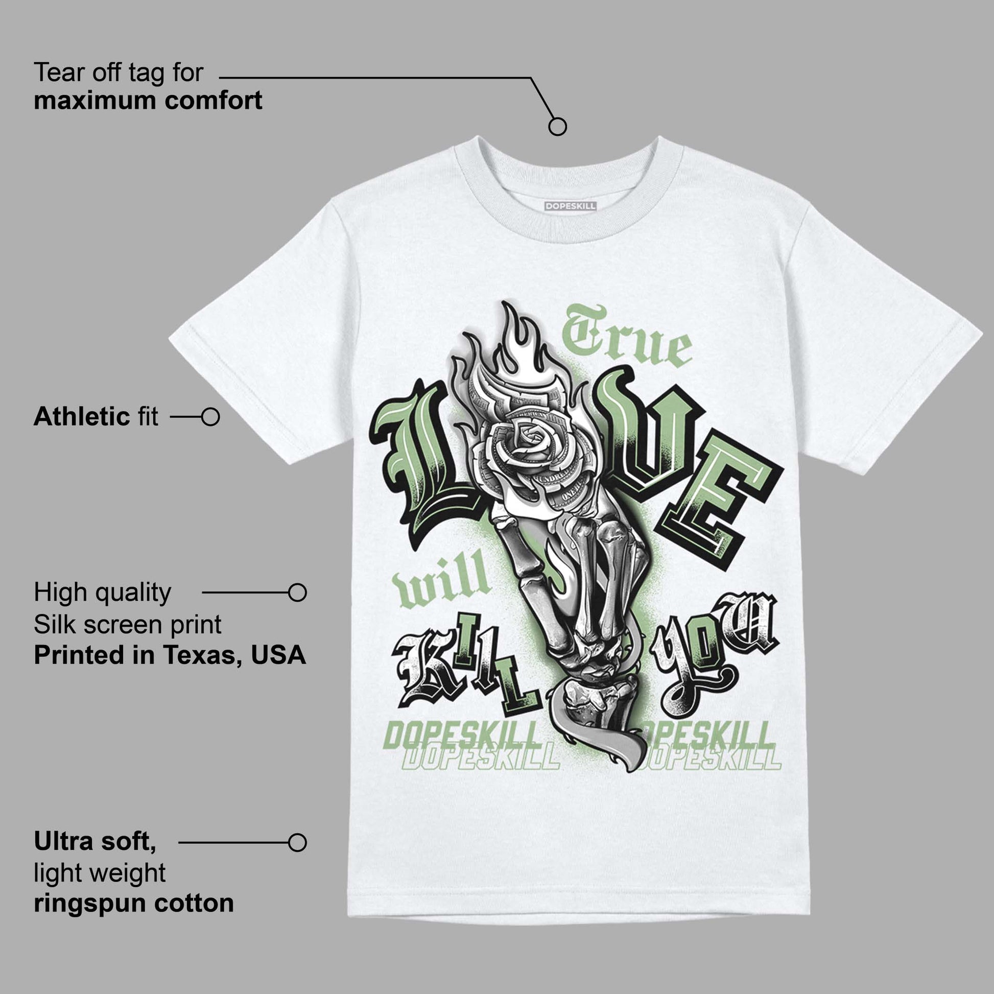Seafoam 4s DopeSkill T-Shirt True Love Will Kill You Graphic