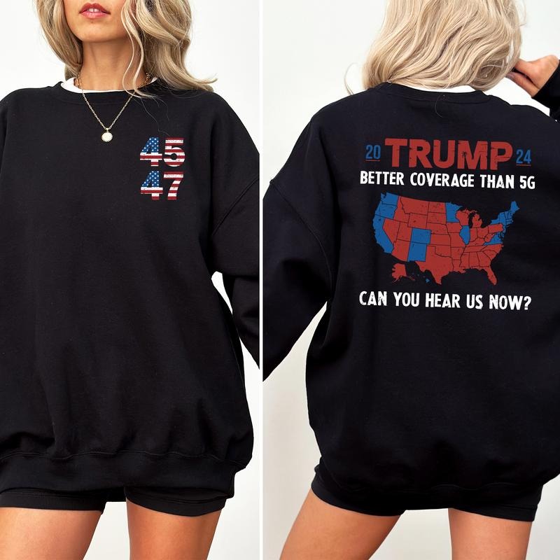 Trummp Better Coverage Than 5G Sweatshirt, President 2024 Double Sided Crewneck, Trummp 47 Long Sleeves Pullover, The Return Sweater, MAGA Trummp Shirt