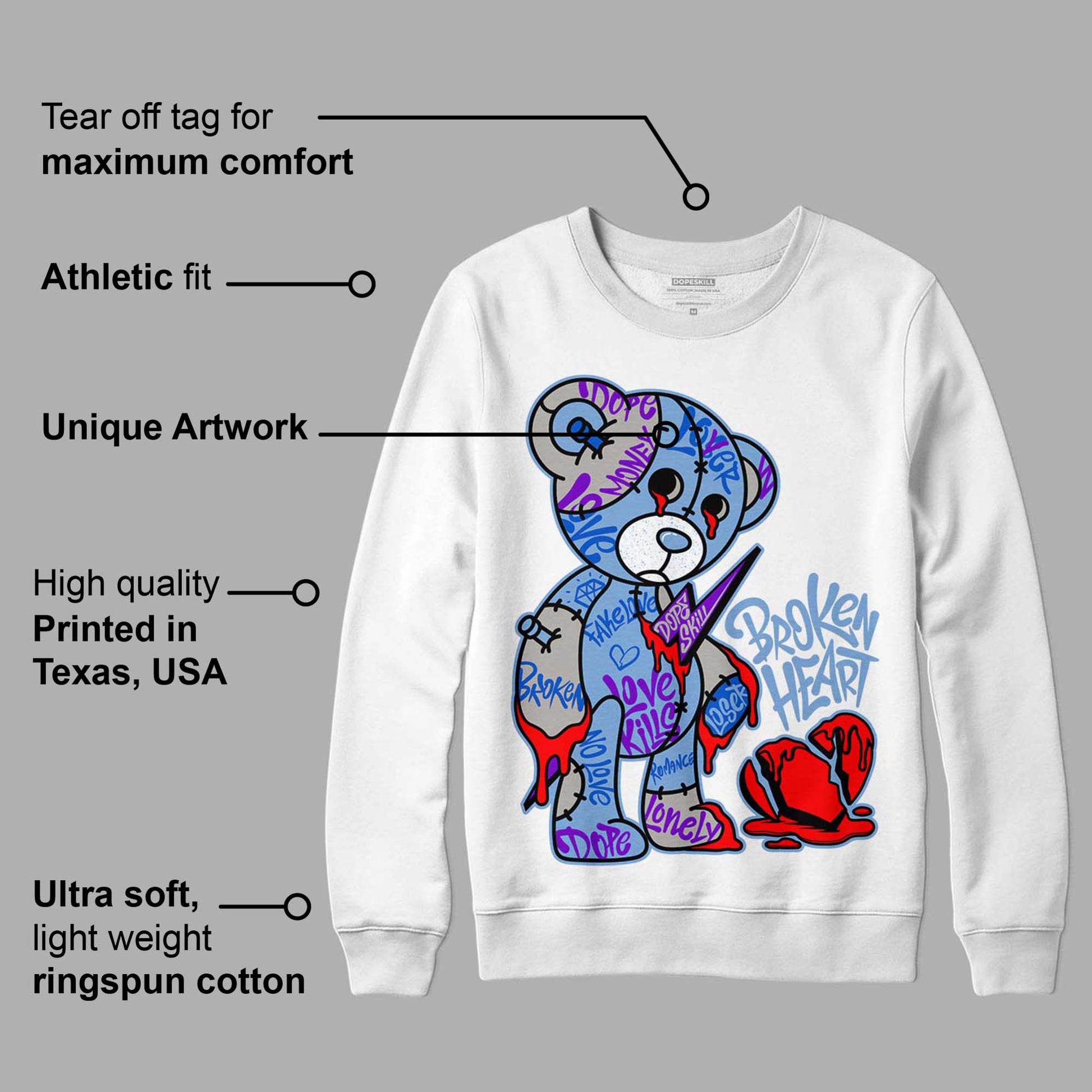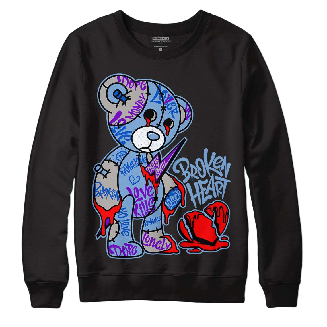 University Blue 5s DopeSkill Sweatshirt Broken Heart Graphic