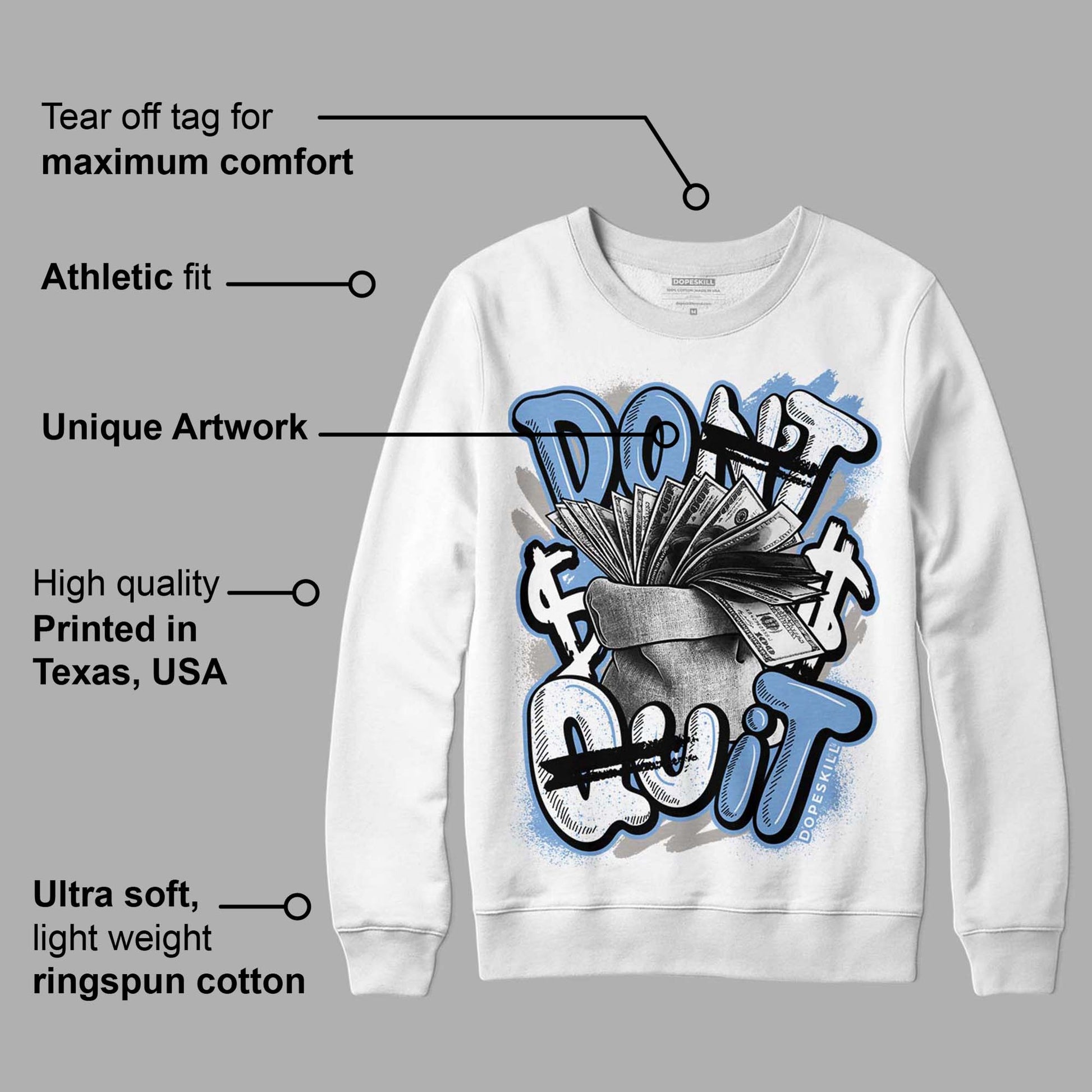 University Blue 5s DopeSkill Sweatshirt Don't Quit Graphic