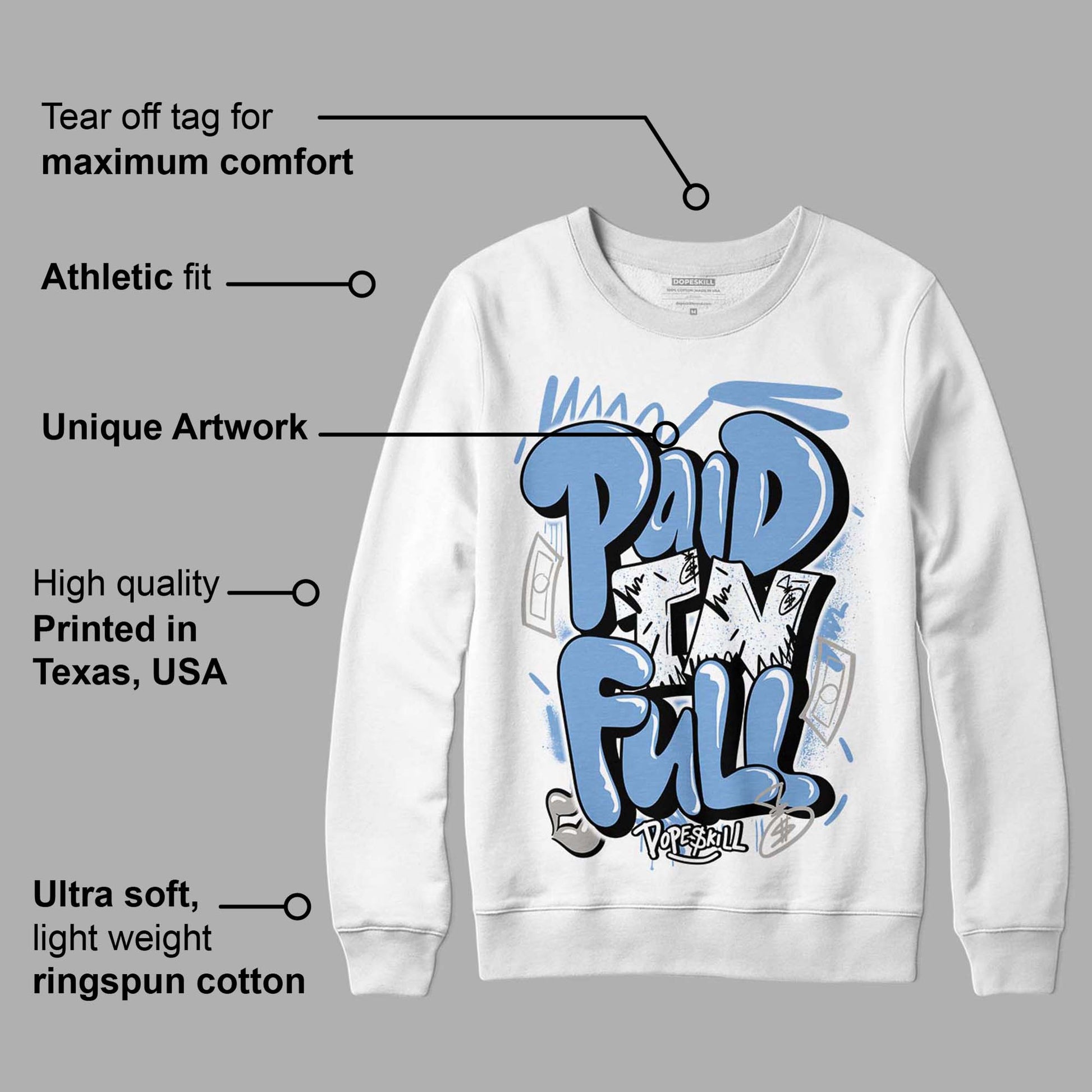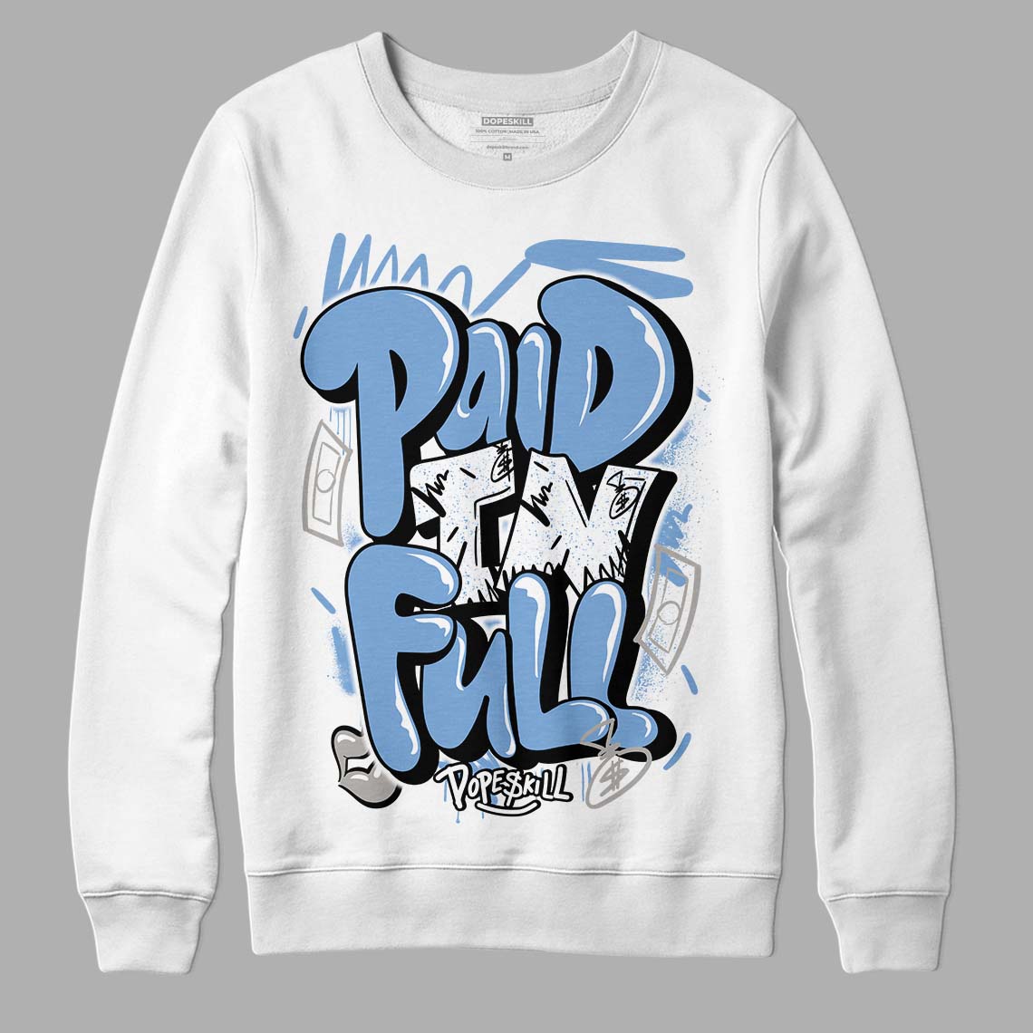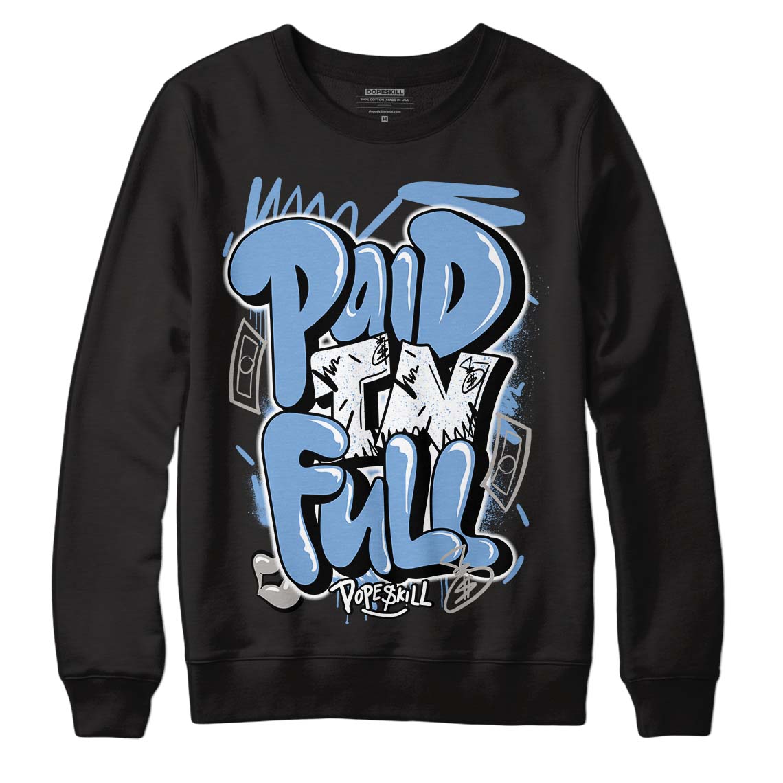 University Blue 5s DopeSkill Sweatshirt New Paid In Full Graphic