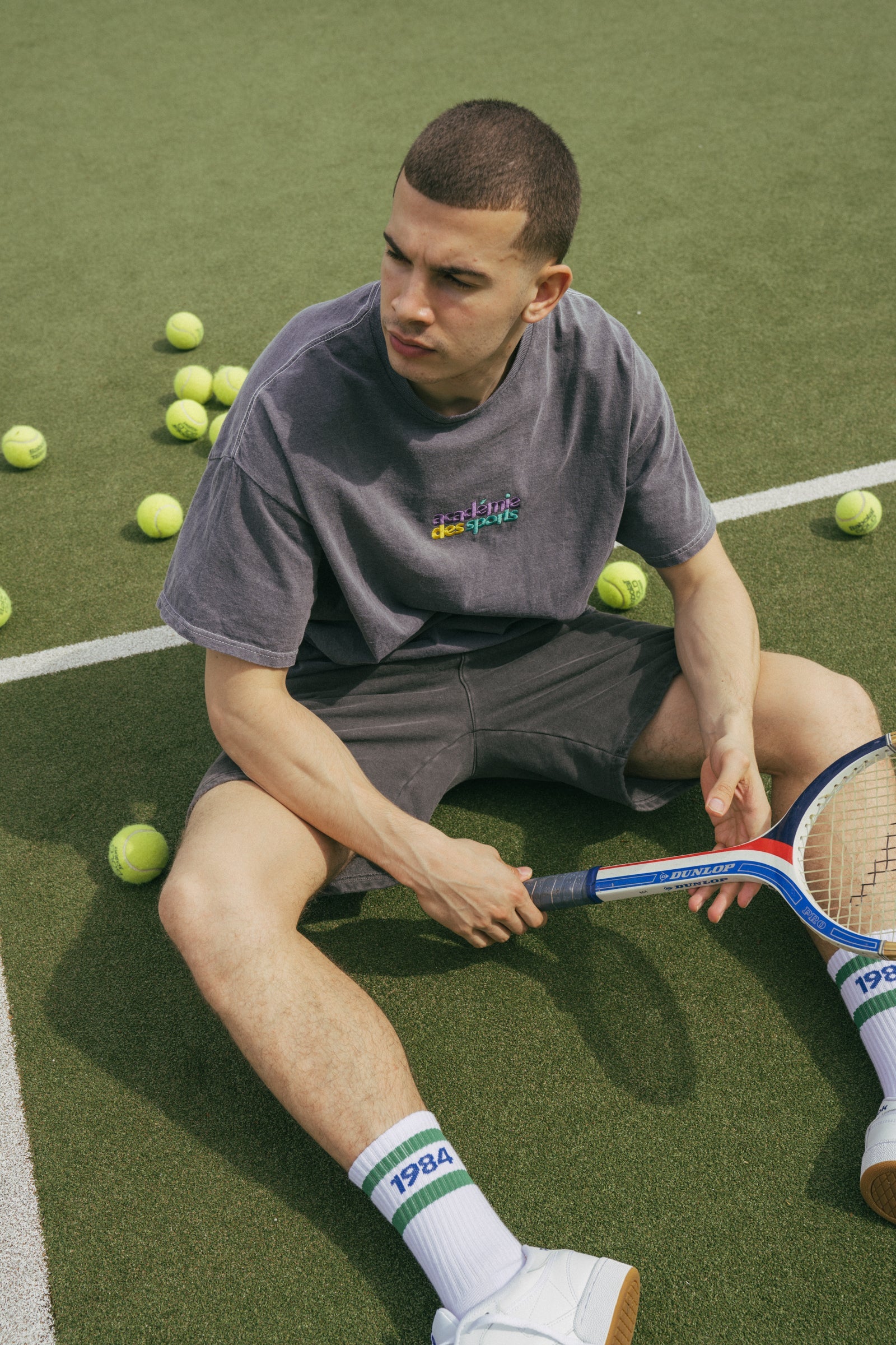 Vice 84 'Club Académie' Embroidered Tee - Vintage Washed Charcoal