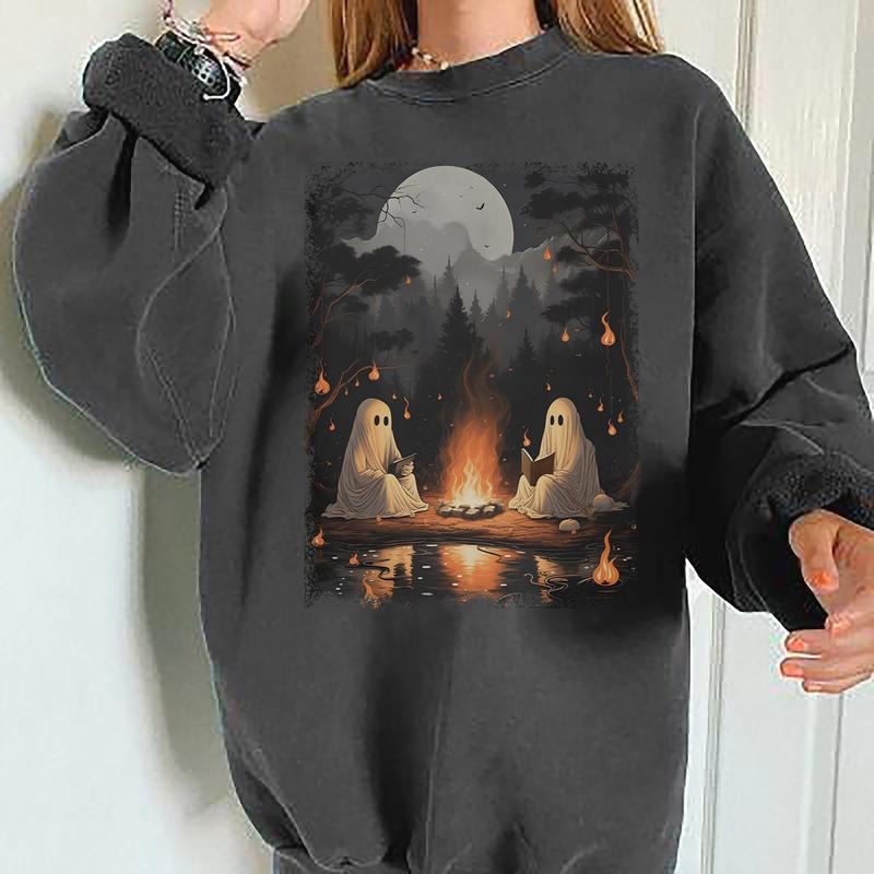 Vintage Ghost Book Camping Shirt, Retro Ghost Sweatshirt, 90s Halloween Shirt, Ghost Camping Sweatshirt, Ghost Reading Shirt, Halloween Gift For Book Lover, Summerween T-Shirt, Camping Tee