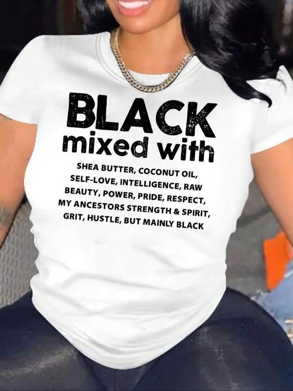 Women's Letter Print Round Neck Graphic Tee, Trendy Casual Short Sleeve T-shirt For Daily Wear, Ladies Summer Outfit