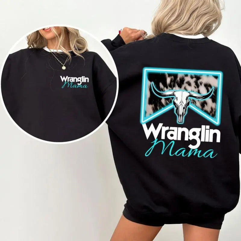 Wranglin' Mama Sweatshirt, Western-Inspired Graphic Sweater, Perfect Gift for Cowgirls, Comfy Western Style Sweatshirt, Country Mama Apparel for Rustic Souls