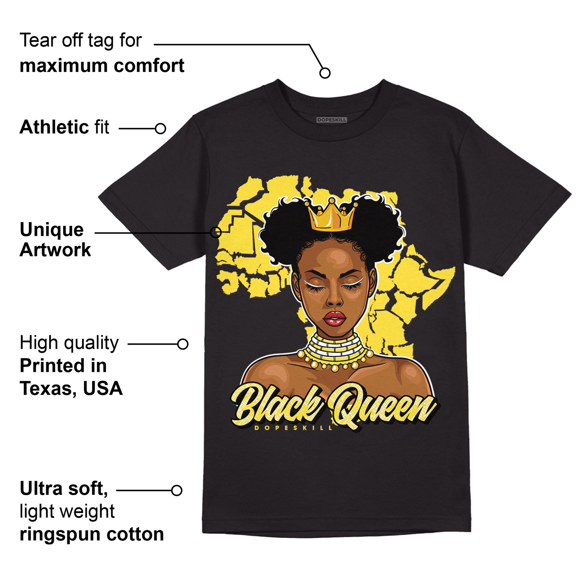 Yellow Snakeskin 11s DopeSkill T-Shirt Black Queen Graphic